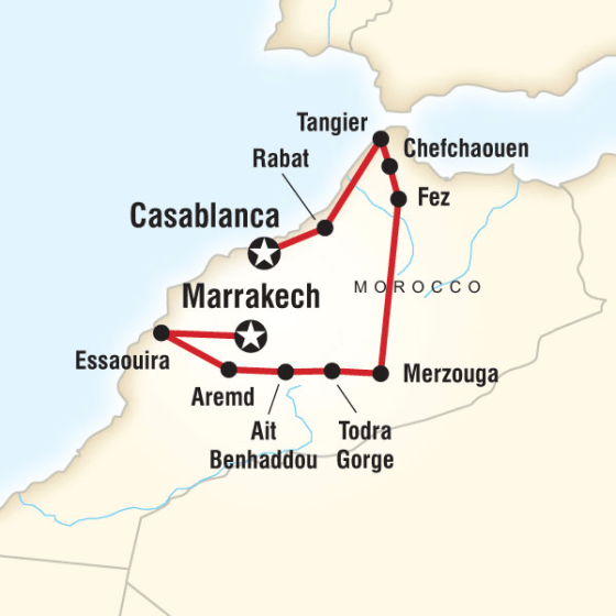 - Marrakech – Ait Benhaddou – Ouarzazate – Zagora – Merzouga – Marrakech